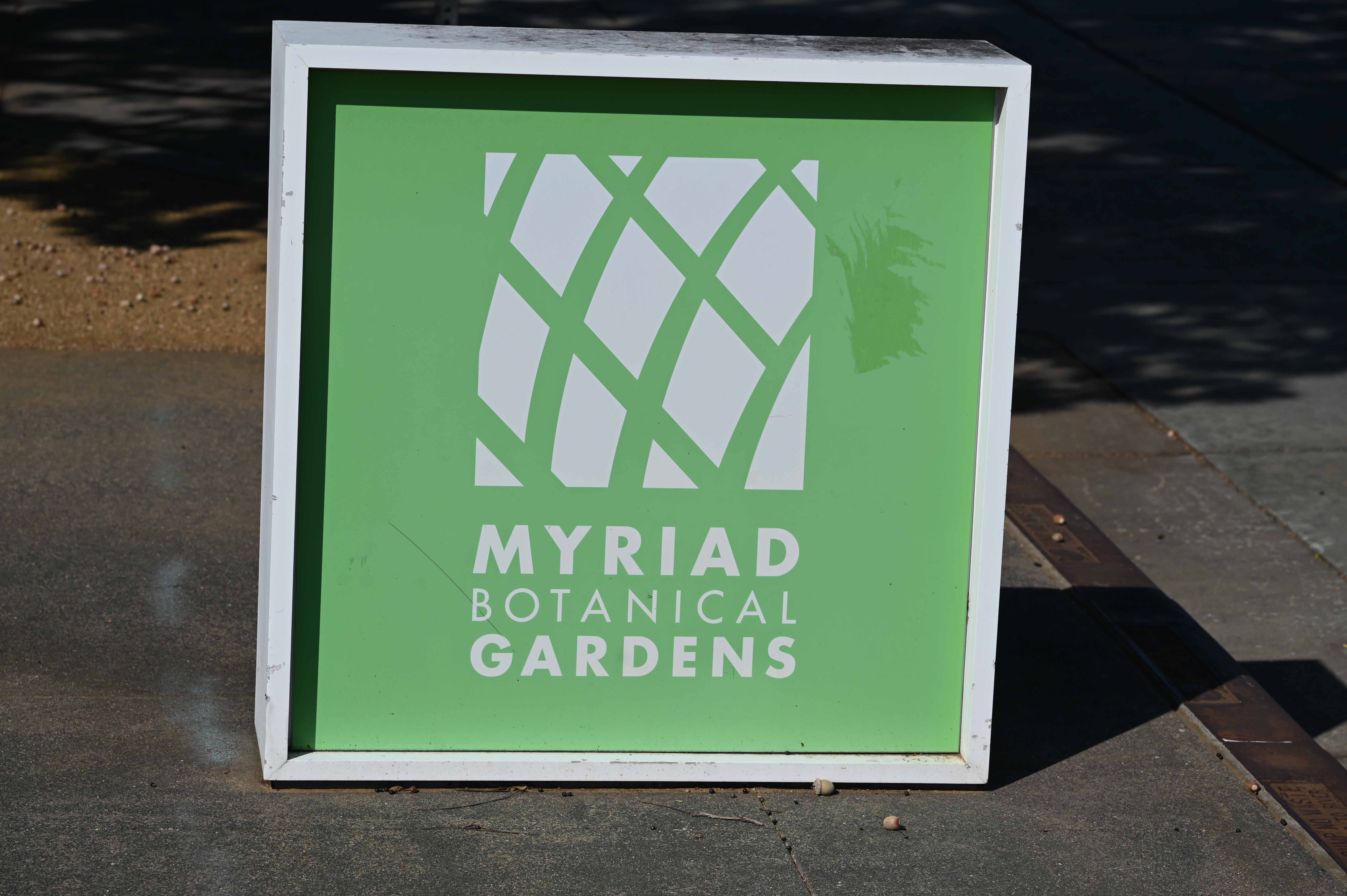 The sign at the entrance to Myriad Gardens. |