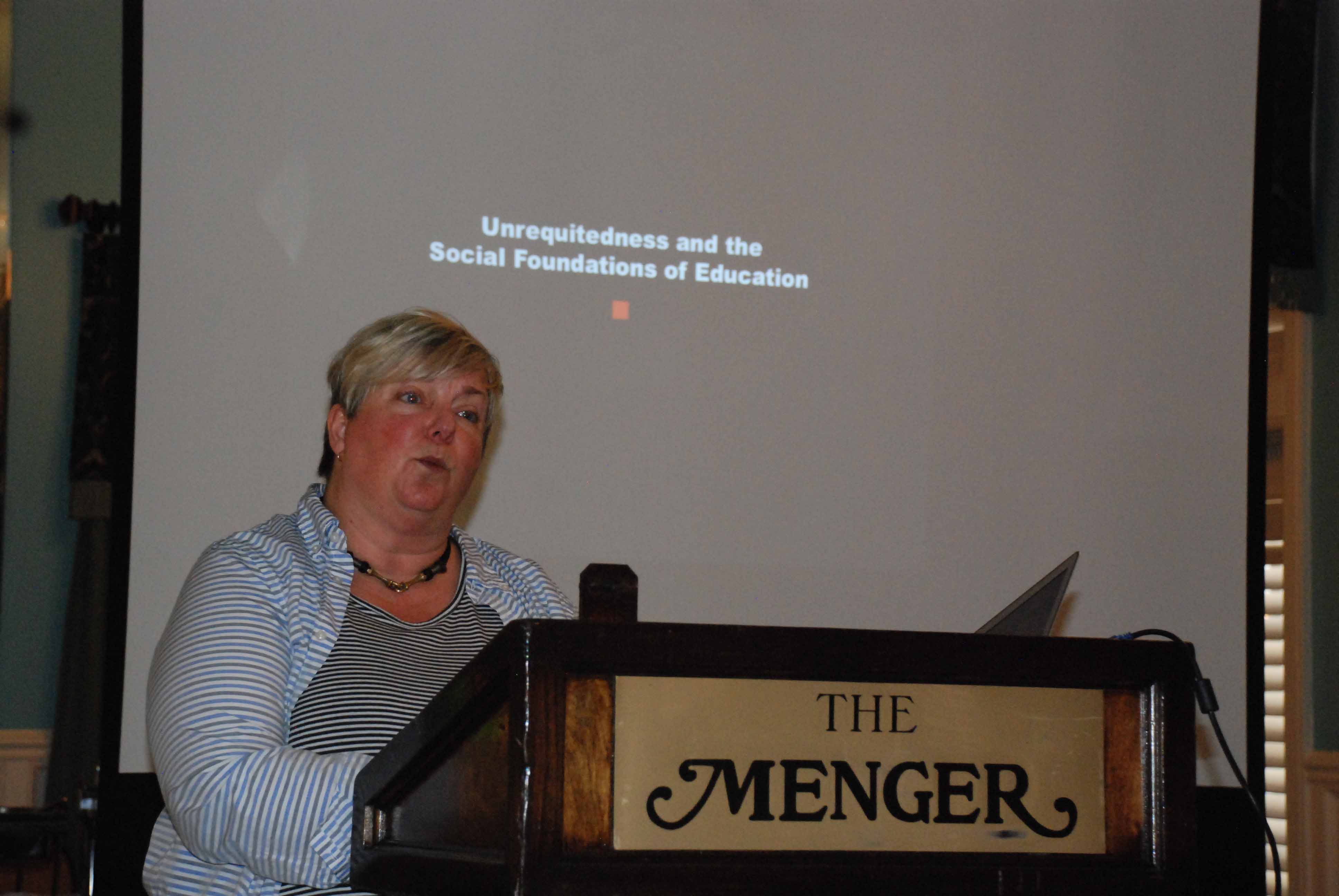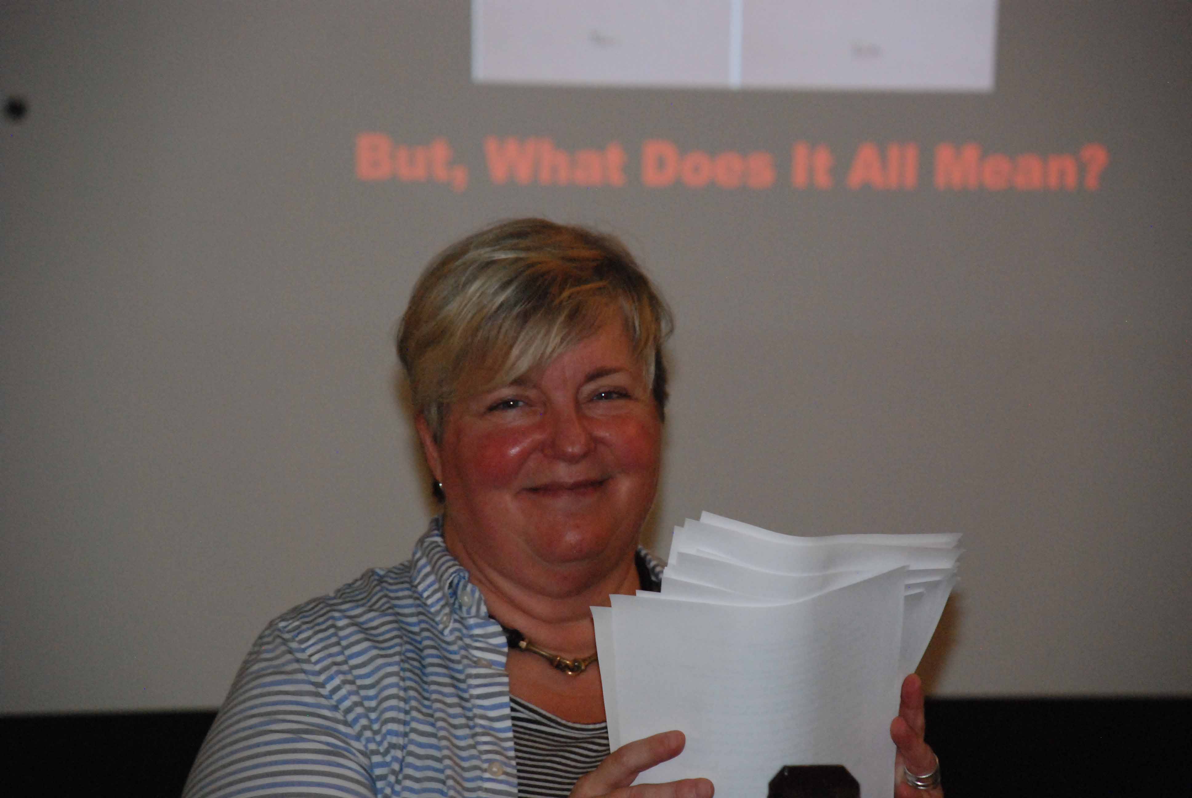| Stacey Otto wrapping up the Presidential Address at SOPHE. |