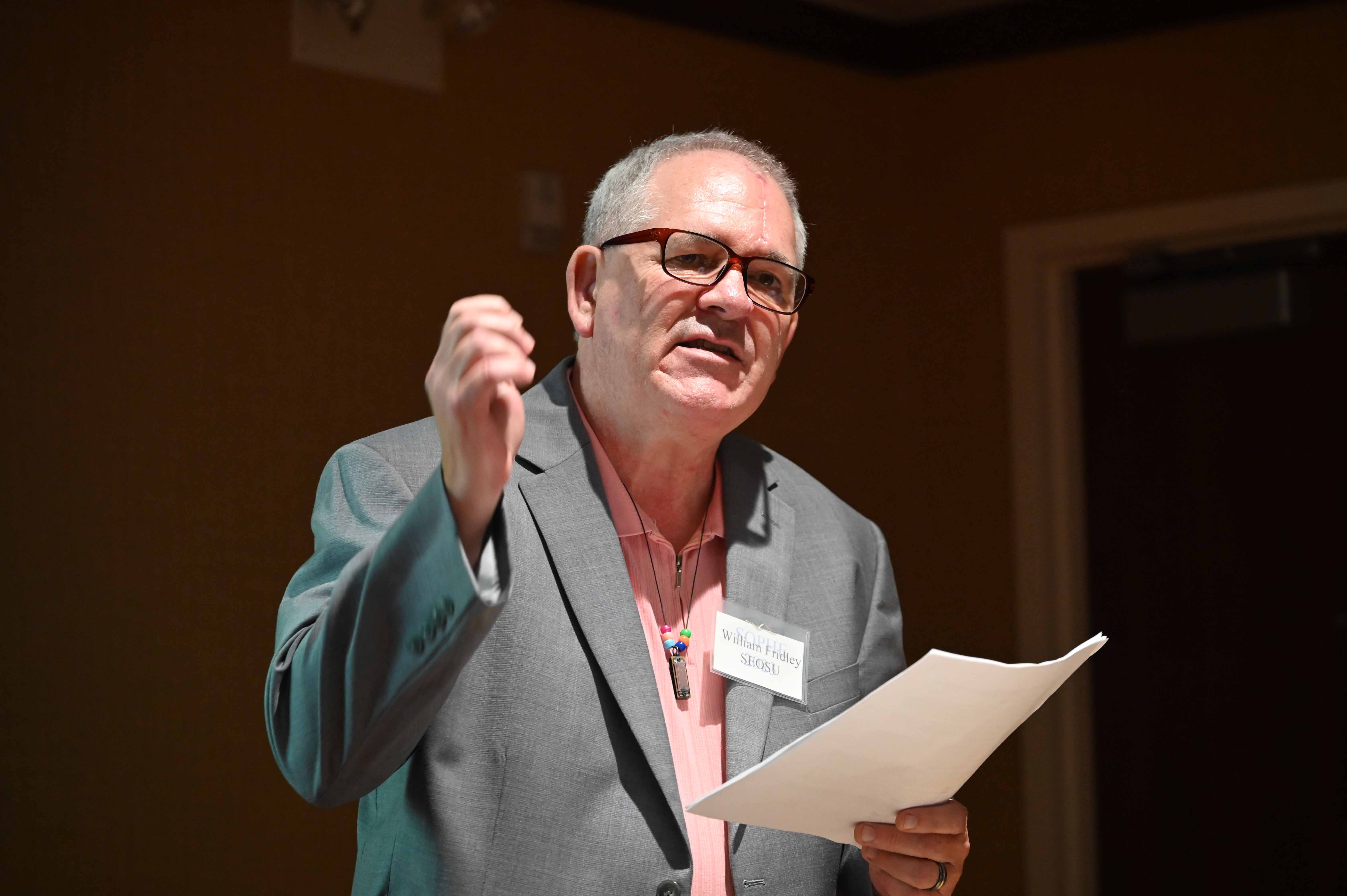 William Fridley giving the Drake Lecture at SOPHE 2023. |