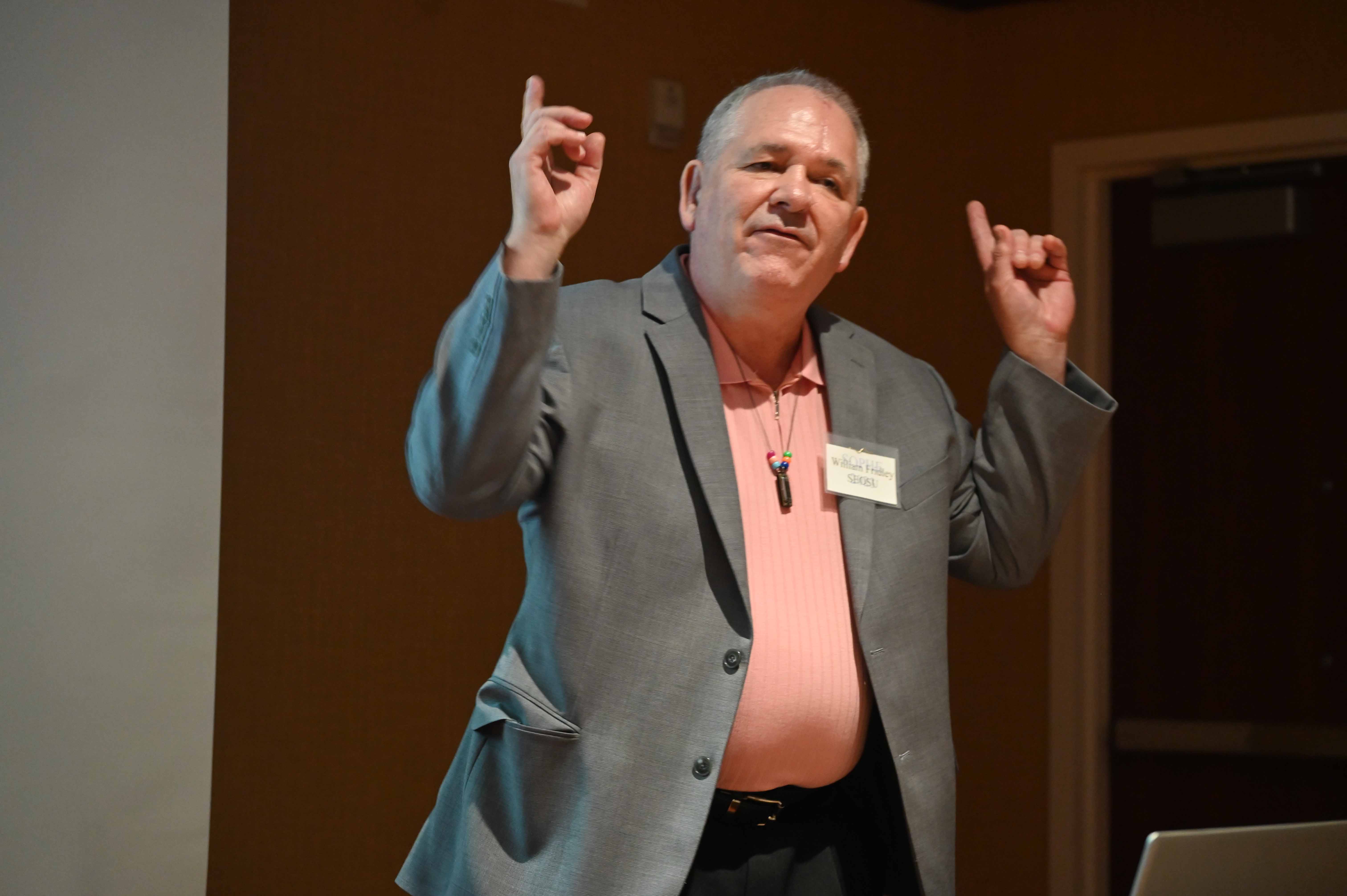 Neil Houser making a point at SOPHE 2023. |