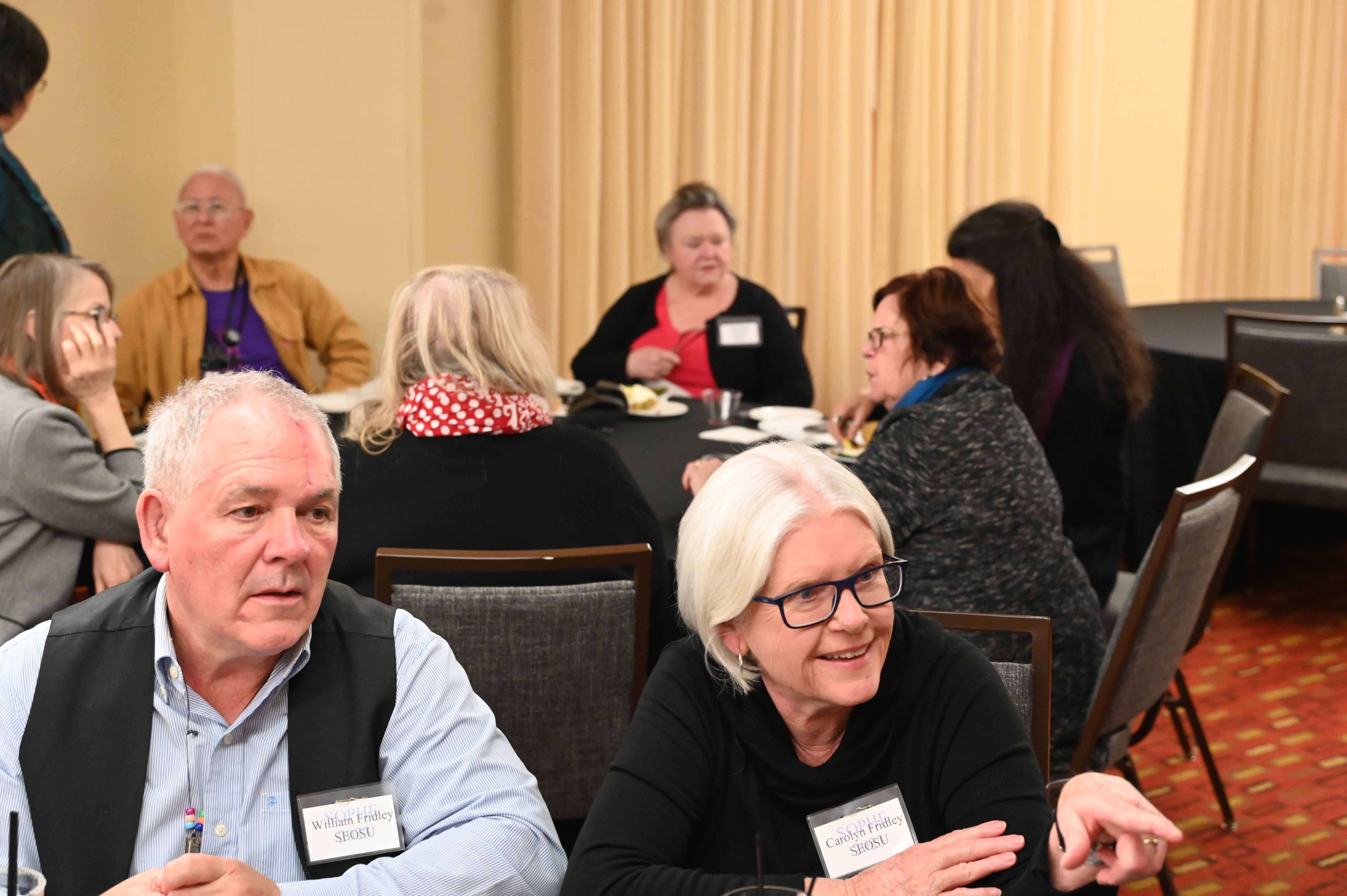 | Bill and Carolyn Fridley enjoying the social at SOPHE 2023. |